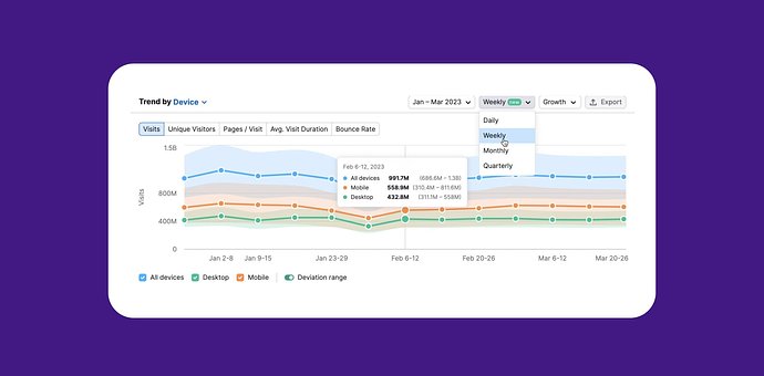 Semrush customers just gained a massive competitive advantage with the release of Daily and Weekly Traffic Data inside the .Trends solution. This eagerly-anticipated update brings daily competitive traffic metrics to .Trends users, each and every day.
